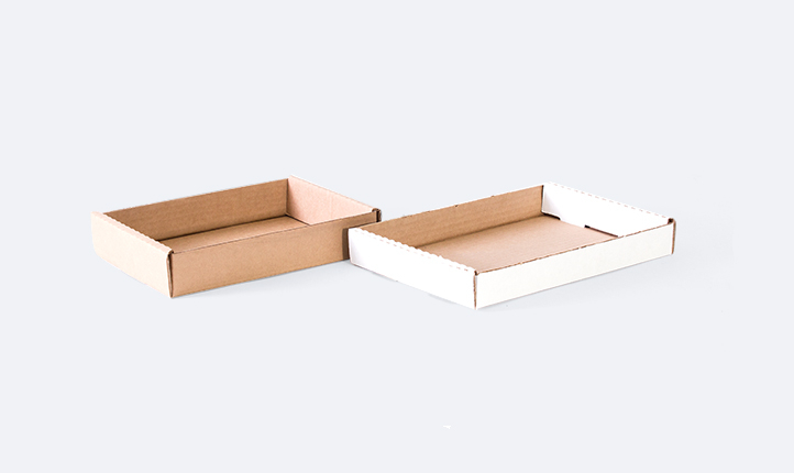 Producto compuesto de dos partes: un fondo de 2 largos, 2 anchos y 1 alto, el cual tiene unión en el costado, ya sea pegada o grapada y las solapas únicamente las tiene en el fondo. La otra parte es la tapa que puede ser igual que el fondo, o bien troquelada auto armable. Este tipo de cajas es ideal para dejar el producto a la vista del consumidor o como exhibidor en el punto de comercialización.
